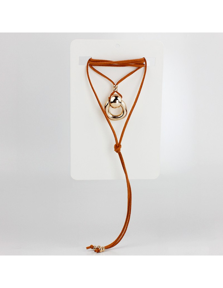 Collar de gamuza de múltiples vueltas con dije exclusivo de CCB y terminales en punteras.