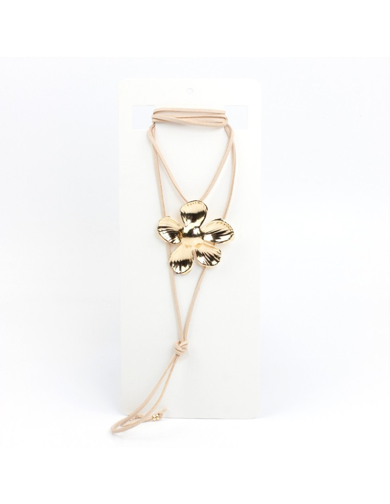 Collar de gamuza de múltiples vueltas, con dije exclusivo de metal con forma de flor y terminales en punteras.