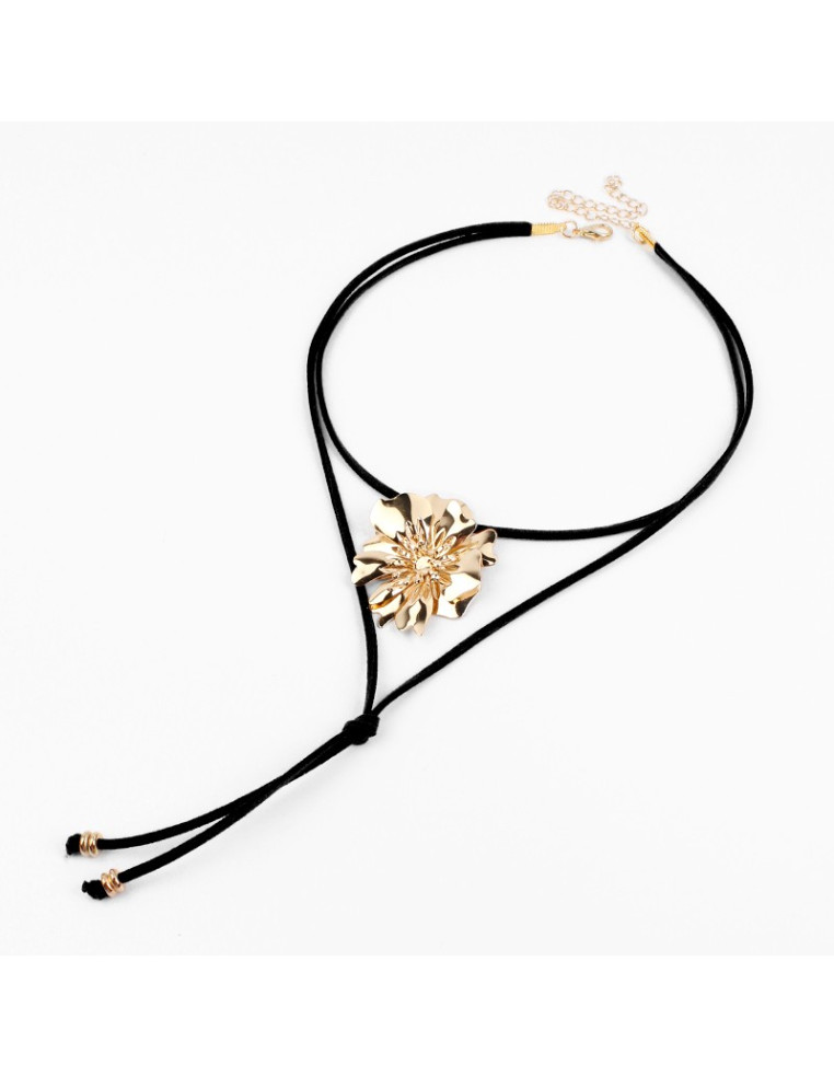 Collar de doble gamuza con dije exclusivo con forma de flor y terminales en punteras.