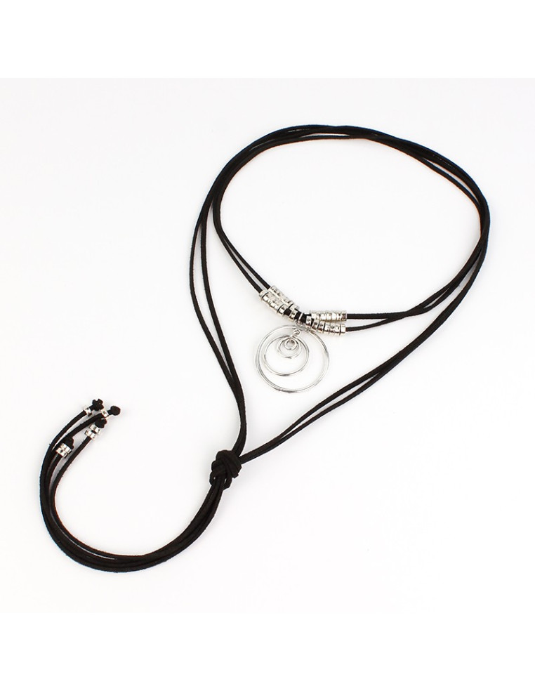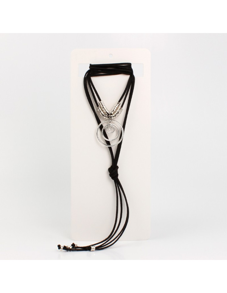 Collar corbatero de gamuza intervenido con dije exclusivo en forma de circulo y piezas pasantes de CCB.