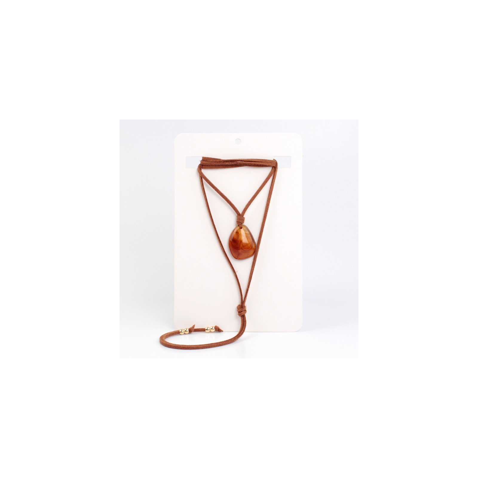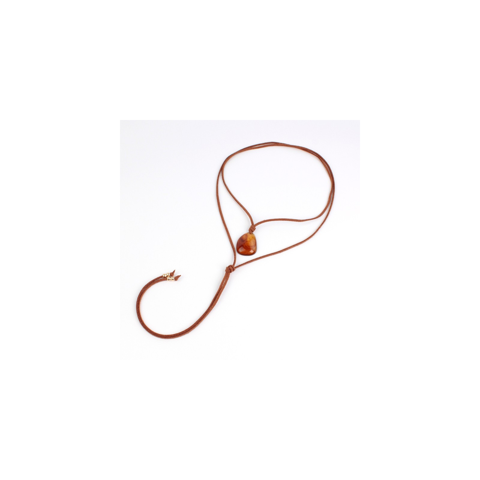 Collar de gamuza de múltiples vueltas, con dije exclusivo de acrílico y terminales en punteras.