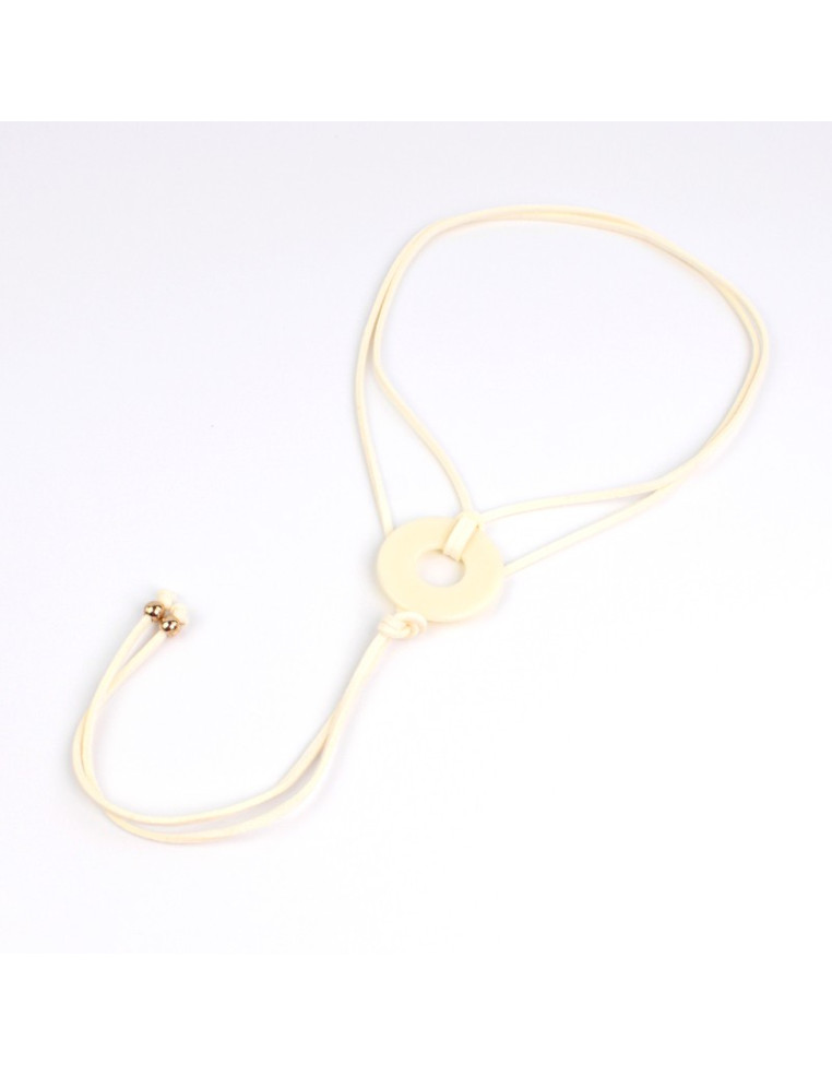 Collar de gamuza de múltiples vueltas, con dije exclusivo de acrílico circular y terminales en punteras.