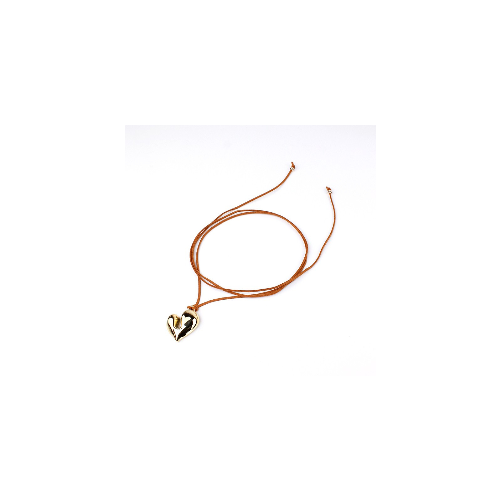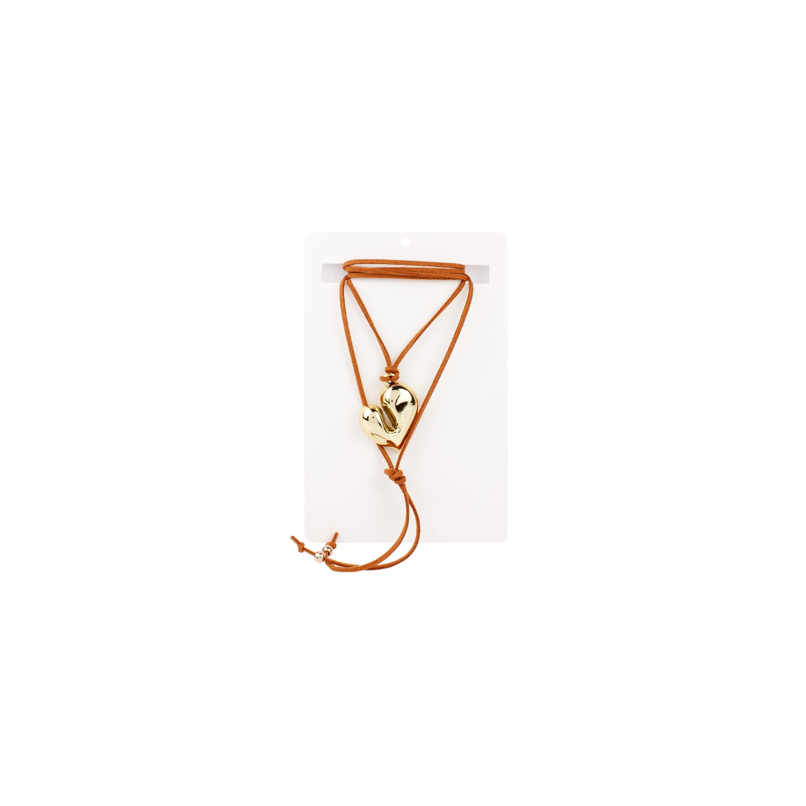 Collar corbatero de gamuza múltiples vueltas con dije exclusivo con forma de corazón de ccb dorado y terminaciones en punteras.