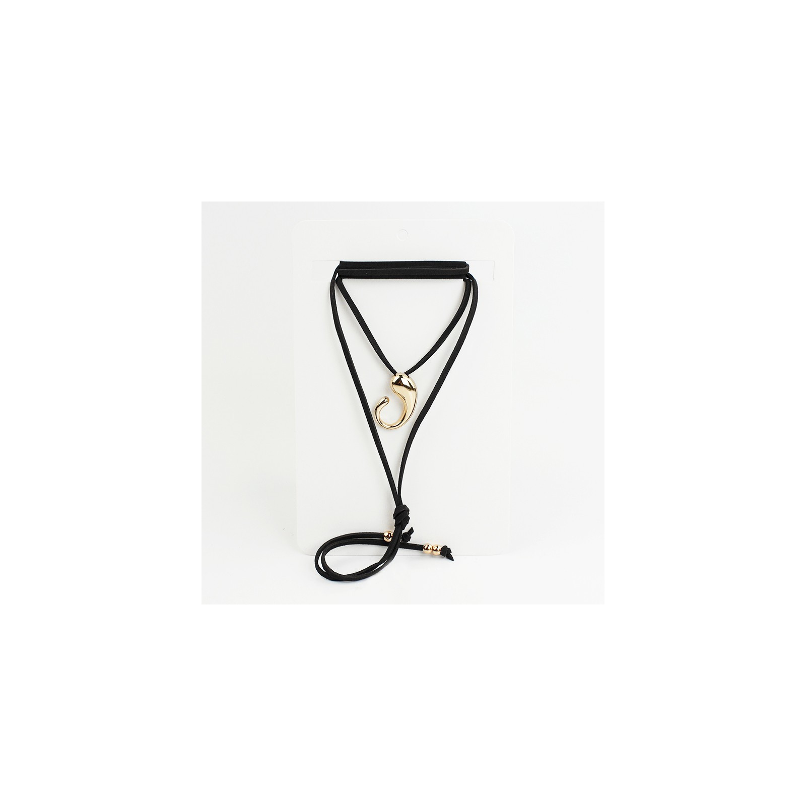 Collar de gamuza de múltiples vueltas, con dije exclusivo de fundición dorado y terminales en punteras.