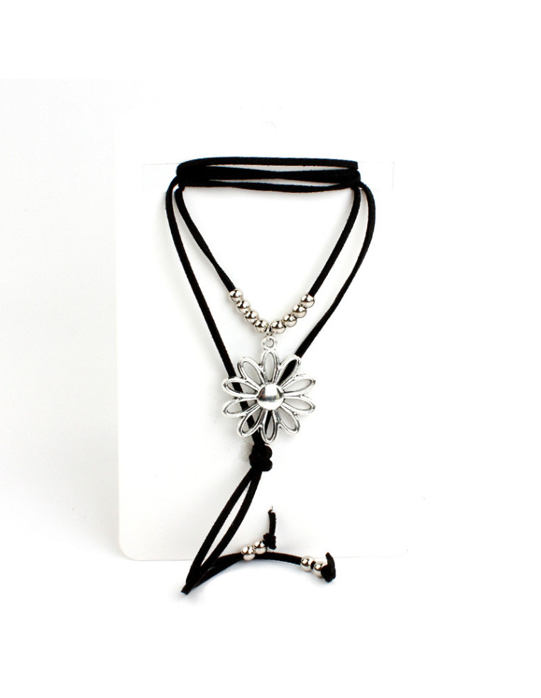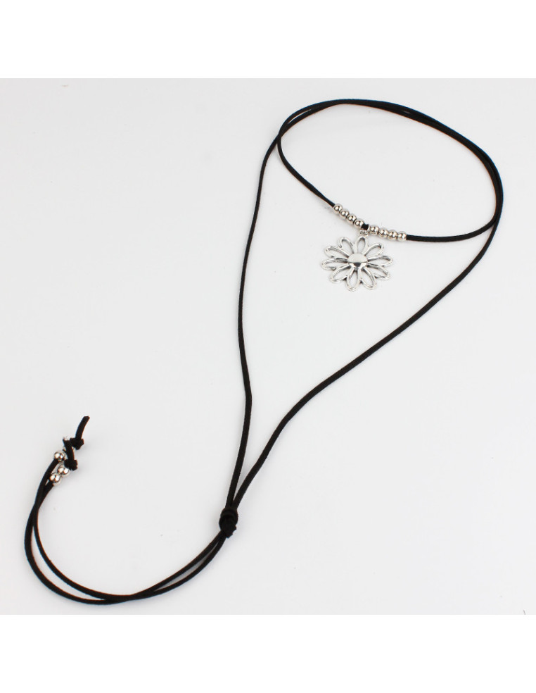 Collar de gamuza de múltiples vueltas, con dije exclusivo de fundición con forma de flor y terminales en punteras.