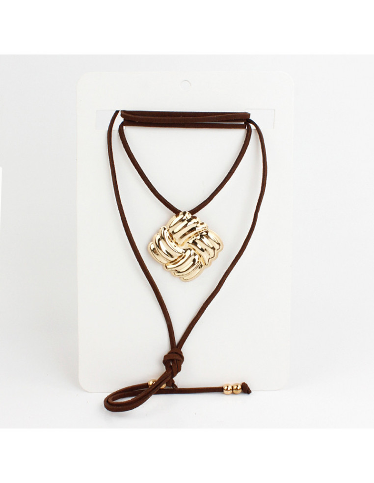 Collar de gamuza de múltiples vueltas, con dije exclusivo de metal y terminales en punteras.