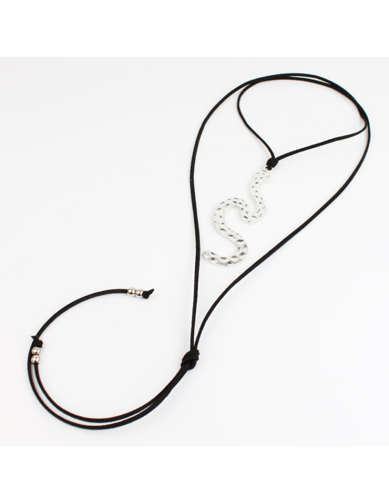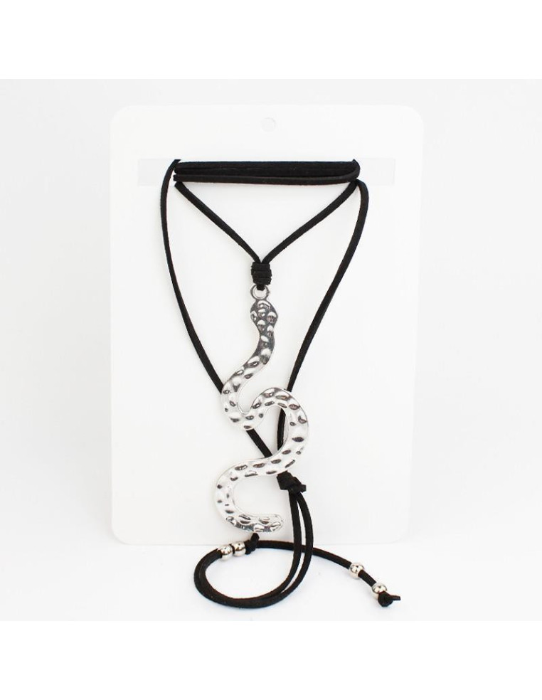 Collar de gamuza de múltiples vueltas, con dije exclusivo con forma de serpiente y terminales en punteras.