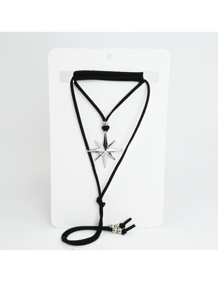 Collar de gamuza de múltiples vueltas, con dije exclusivo de fundición con forma de destello y terminales en punteras.