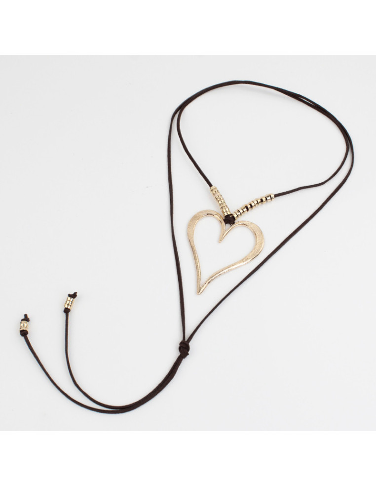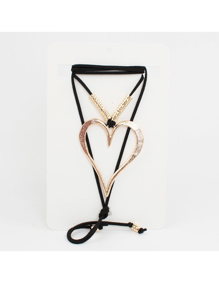 Collar de gamuza de múltiples vueltas, con dije exclusivo de fundición con forma de corazón y terminales en punteras.