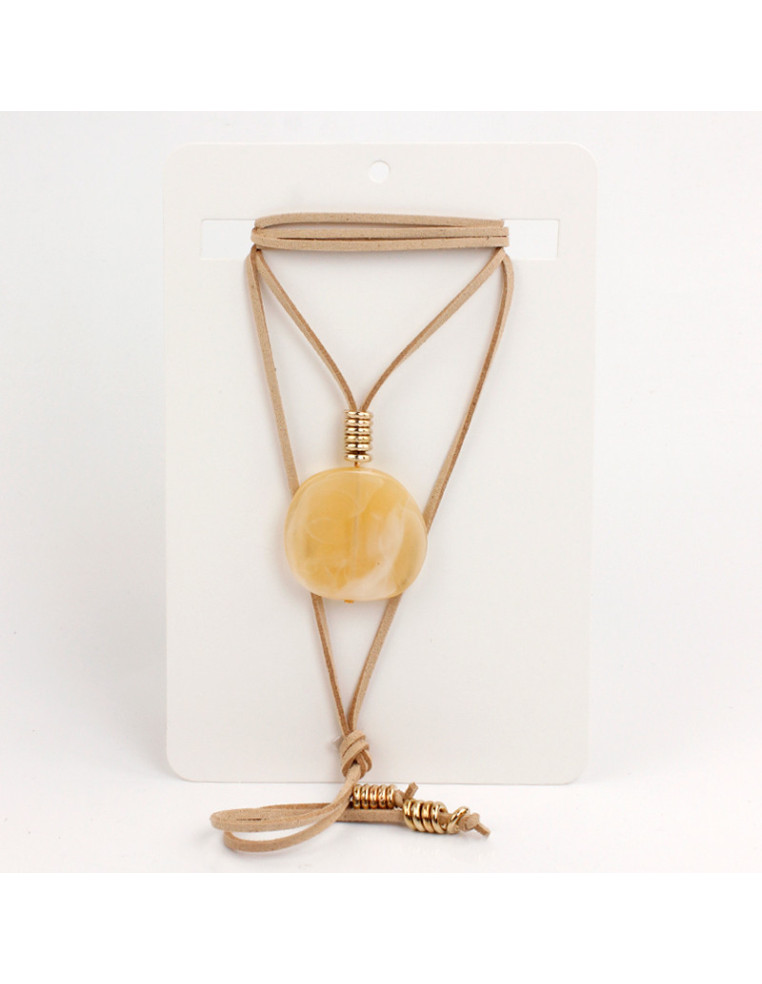 Collar de gamuza de múltiples vueltas, con dije exclusivo de acrílico y terminales en punteras.