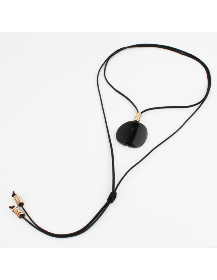 Collar de gamuza de múltiples vueltas, con dije exclusivo de acrílico y terminales en punteras.