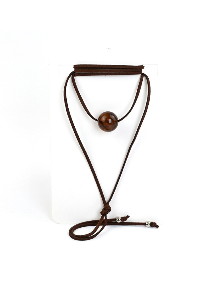 Collar de múltiples vueltas de gamuza con dije exclusivo de acrílico y terminales en punteras. Medida 140cm