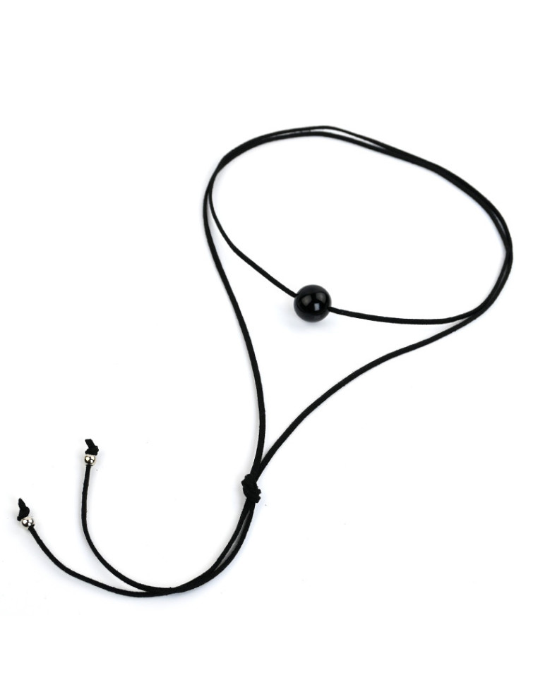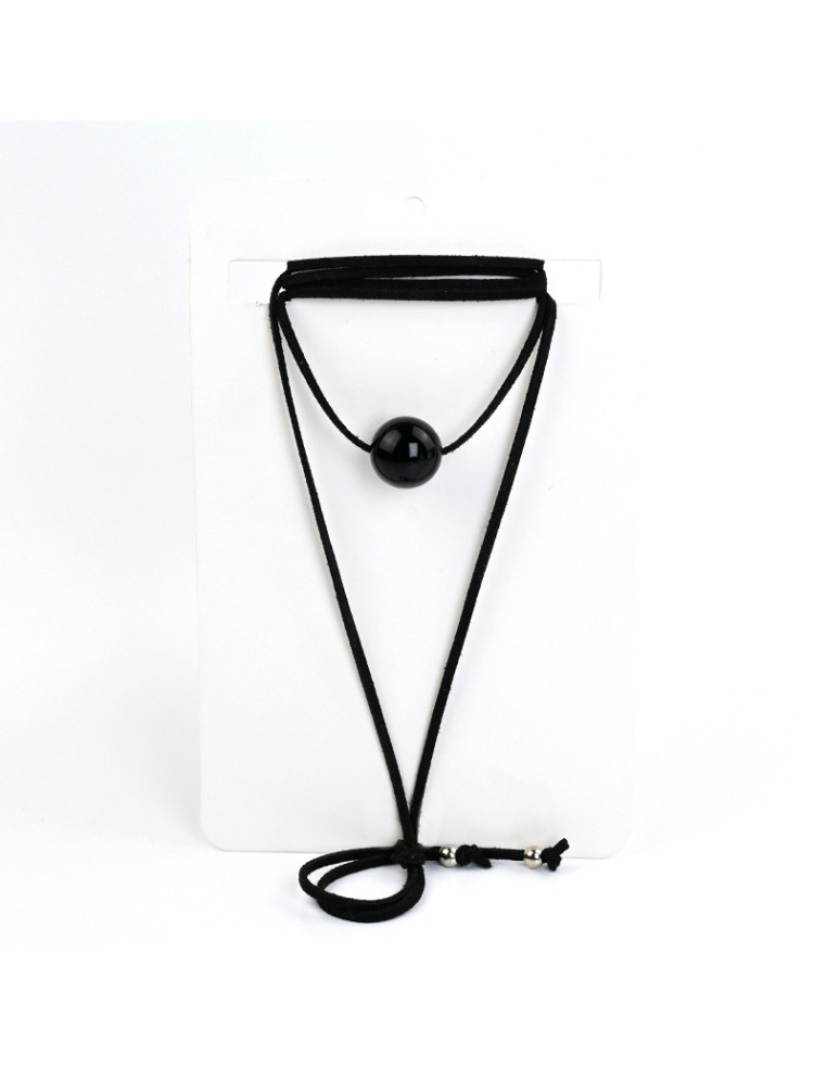 Collar de múltiples vueltas de gamuza con dije exclusivo de acrílico y terminales en punteras. Medida 140cm