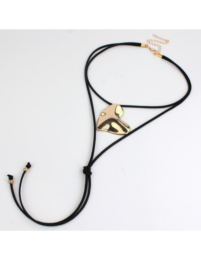 Collar corbatero de doble caída de gamuzas, con dije exclusivo de metal con forma de corazón.
