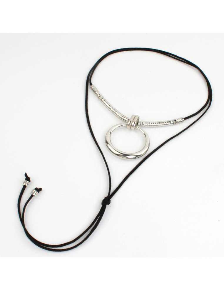 Collar de gamuza de múltiples vueltas, con dije exclusivo y terminales en punteras.