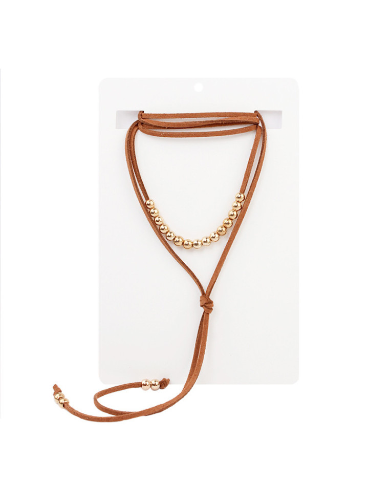 Collar corbatero de gamuza múltiples vueltas con piezas pasantes doradas y terminaciones en punteras.