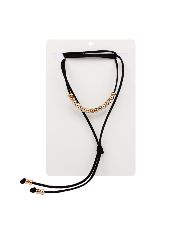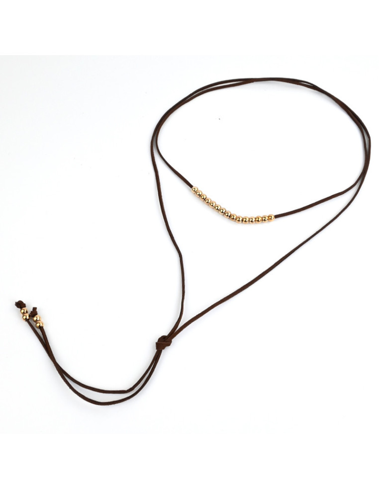 Collar corbatero de gamuza múltiples vueltas con piezas pasantes doradas y terminaciones en punteras.