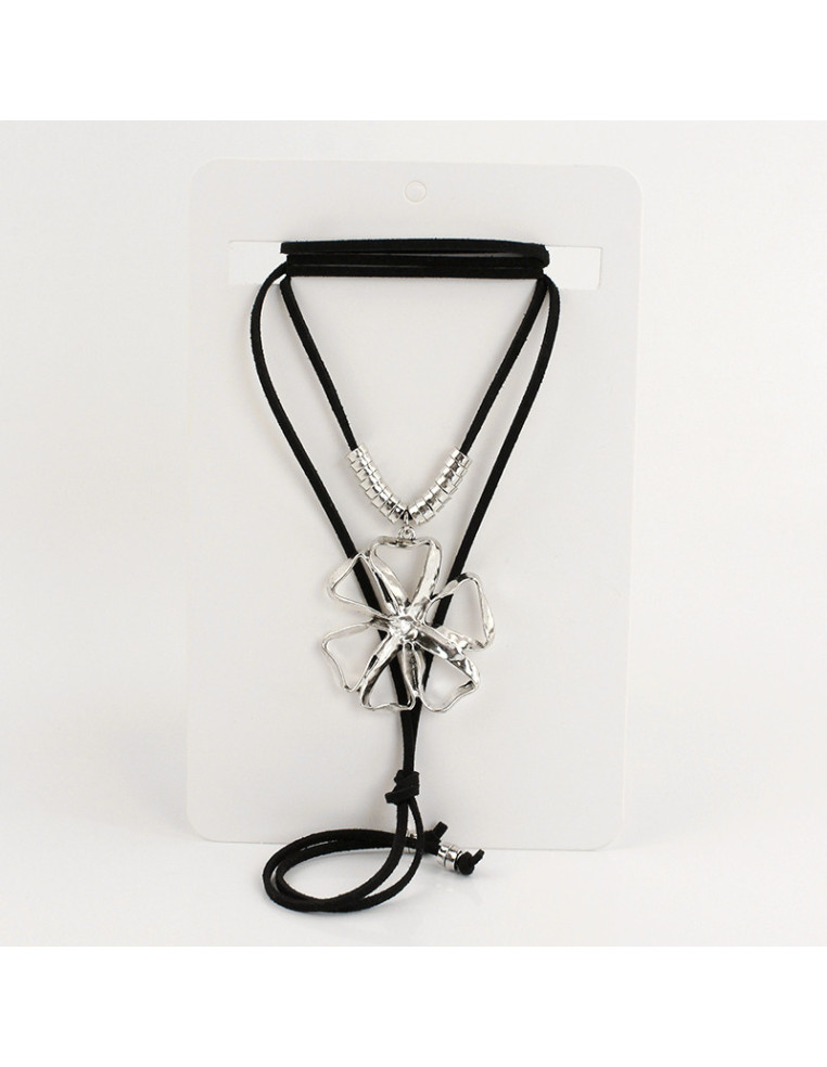 Collar de gamuza de múltiples vueltas, con dije exclusivo de fundición con forma de flor y terminales en punteras.