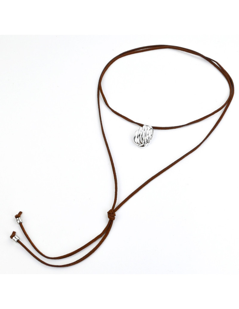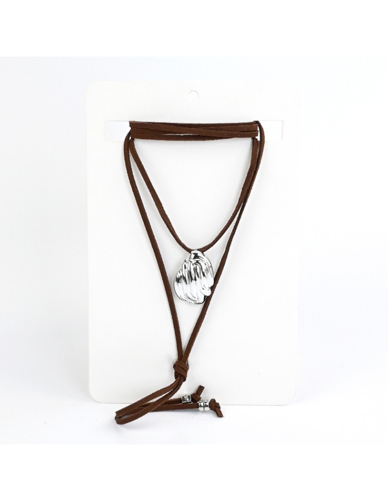 Collar de gamuza de múltiples vueltas, con dije exclusivo de CCB orgánico y terminales en punteras.
