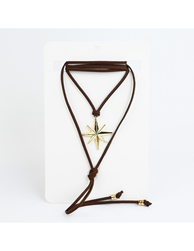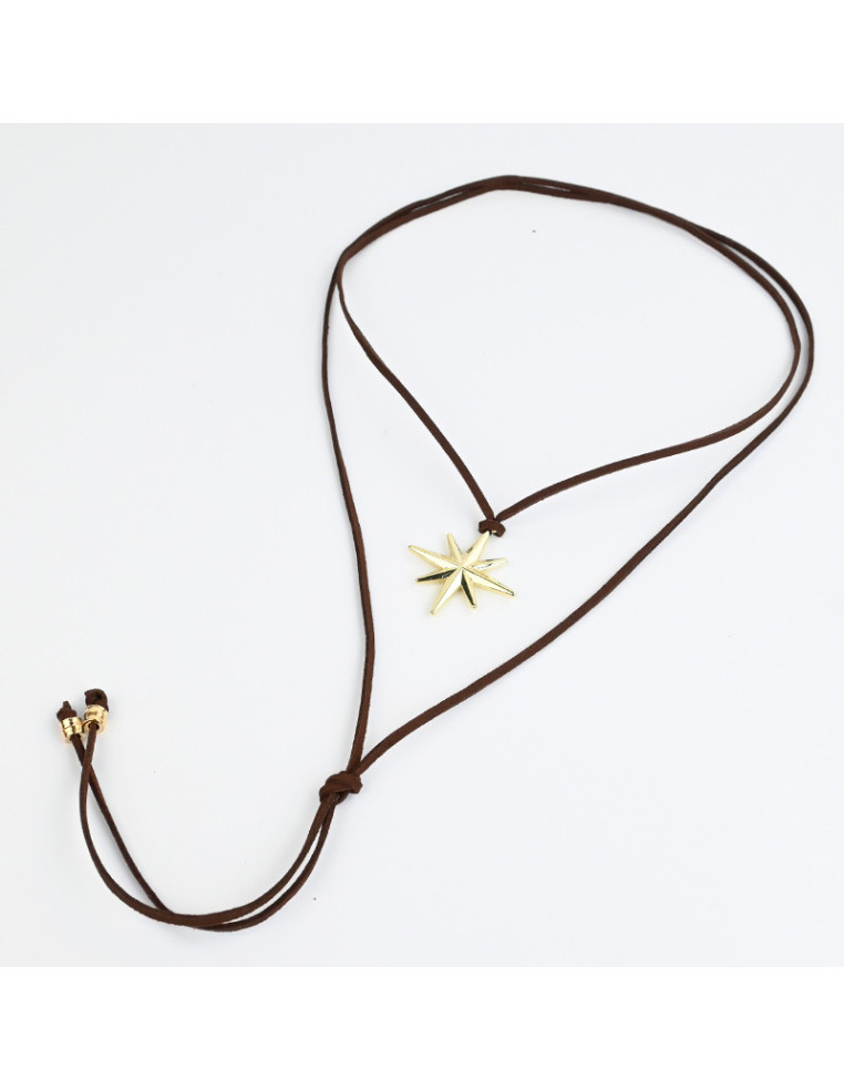 Collar de gamuza de múltiples vueltas, con dije exclusivo de fundición y terminales en punteras.