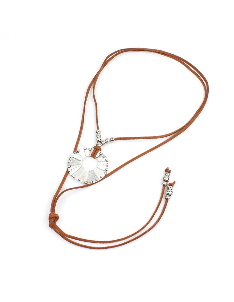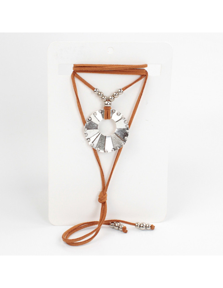 Collar largo de gamuza con dije exclusivo geométrico y terminaciones de ccb.