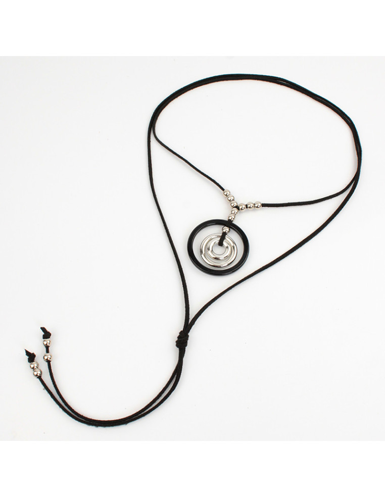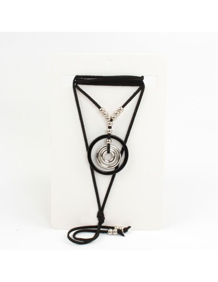 Collar de gamuza de múltiples vueltas, con dije exclusivo de acrílico combinado con CCB y terminales en punteras.