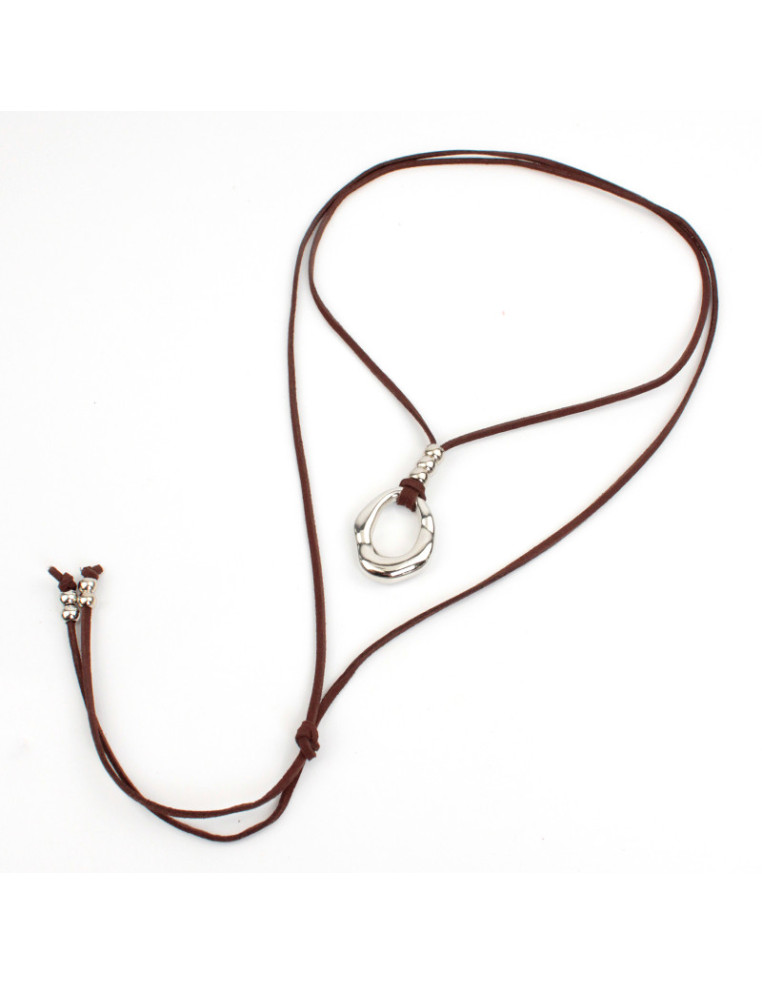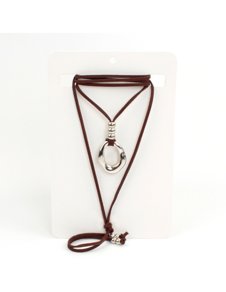 Collar de gamuza de múltiples vueltas, con dije exclusivo de CCB de forma orgánica y terminales en punteras.
