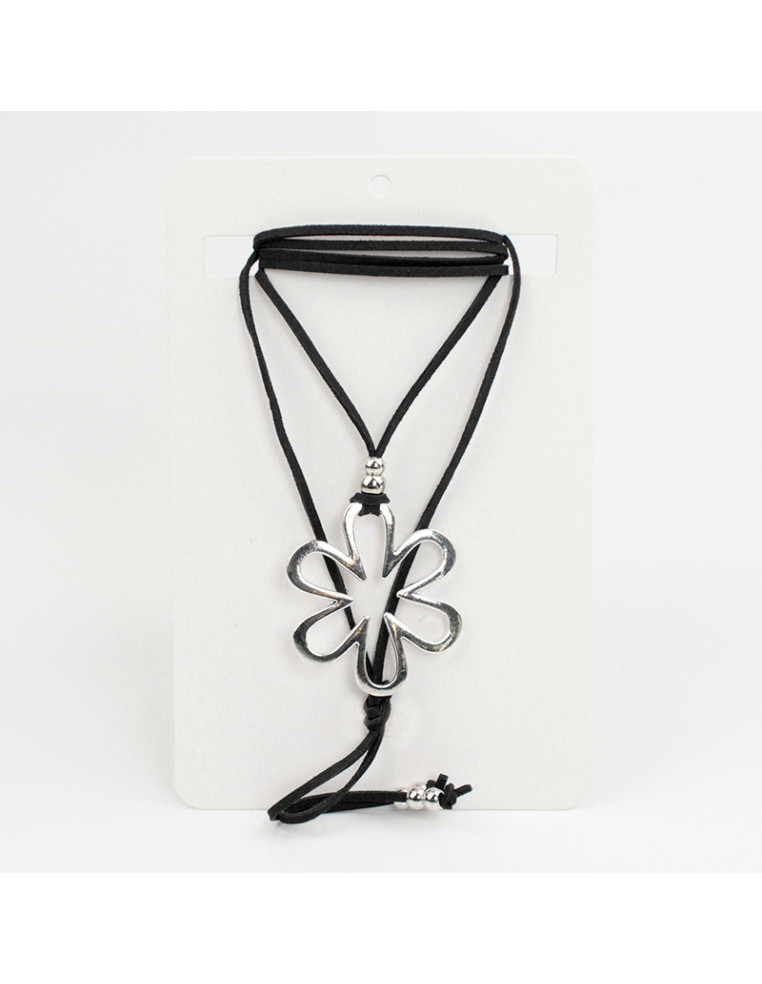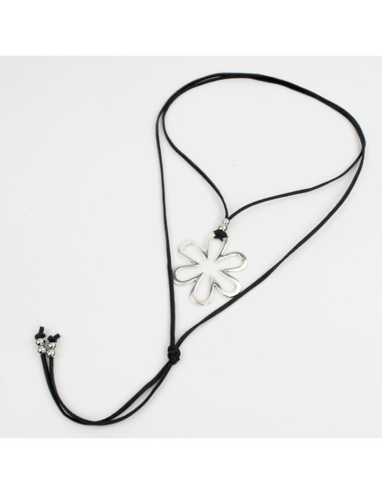 Collar de gamuza de múltiples vueltas, con dije exclusivo de fundición con forma de flor y terminales en punteras.