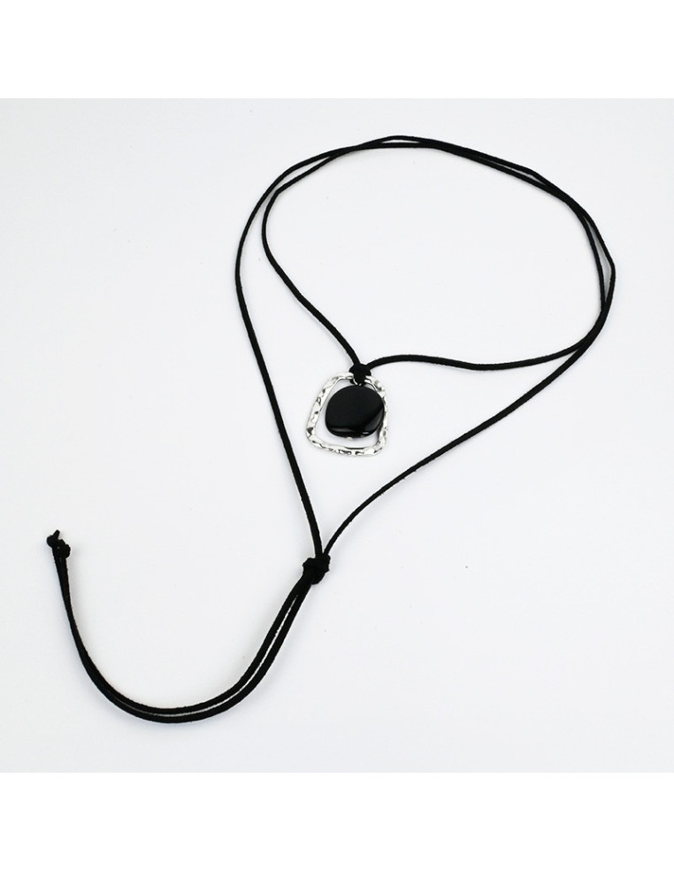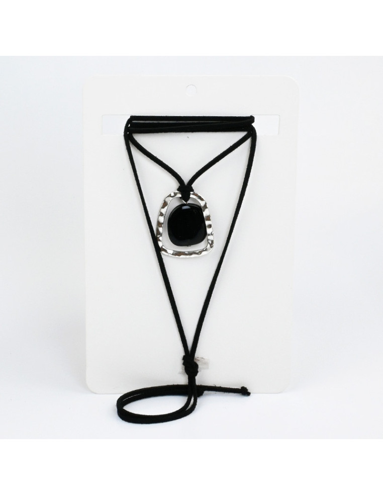 Collar de gamuza de múltiples vueltas, con dije exclusivo de fundición combinado con pieza de acrílico.