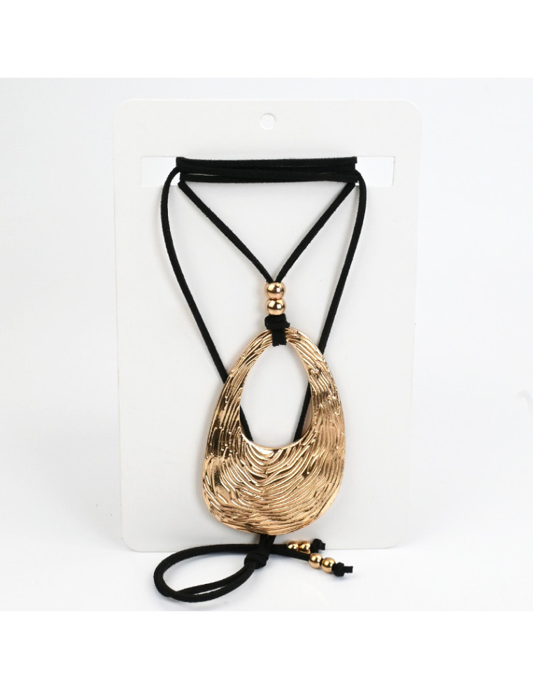 Collar de gamuza de múltiples vueltas, con dije exclusivo de fundición y terminales en punteras.Medida: 140cm de largo.