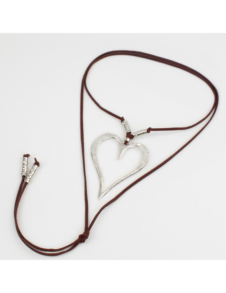 Collar de gamuza de múltiples vueltas, con dije exclusivo de fundición con forma de corazón y terminales en punteras.