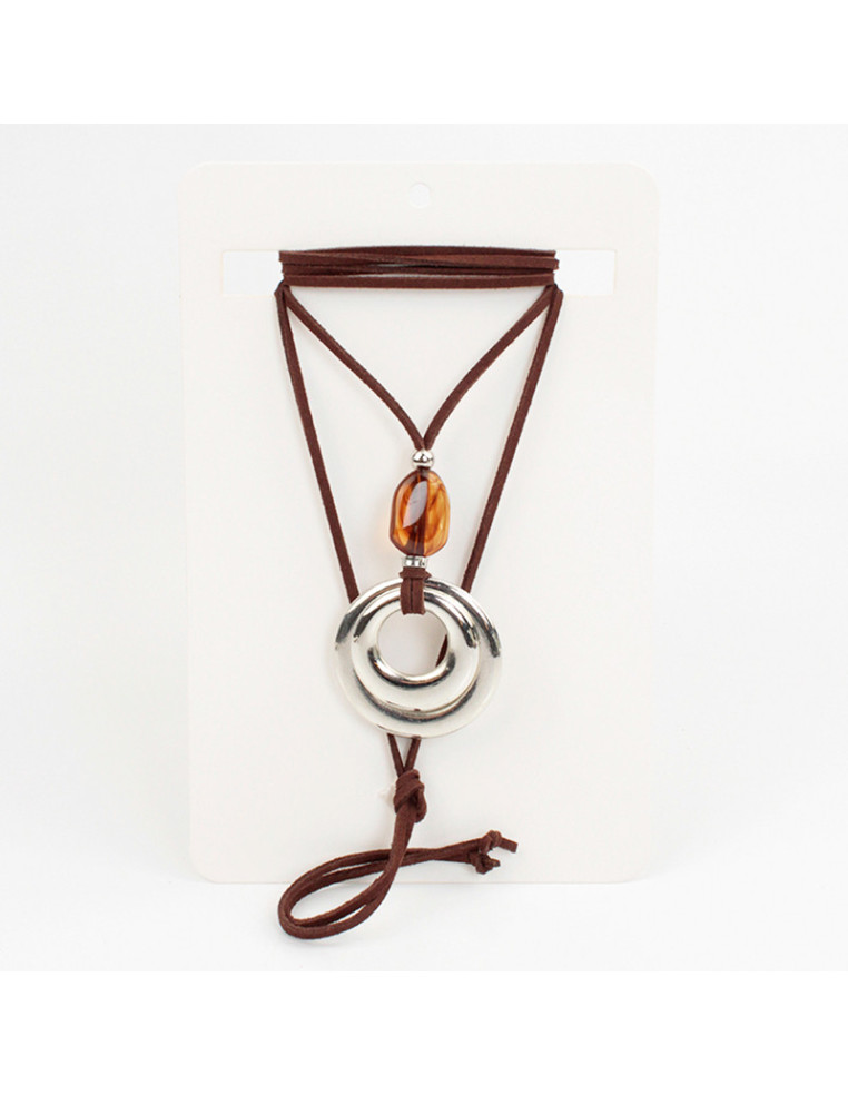 Collar de gamuza de múltiples vueltas, con dije exclusivo de CCB combinados con piezas de acrílico. Medida: 140cm de largo.
