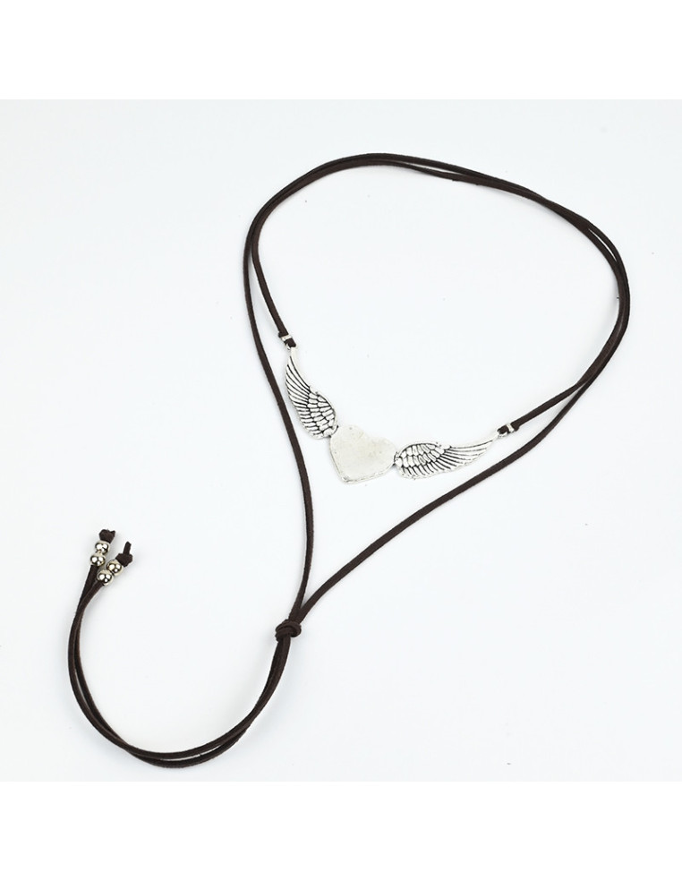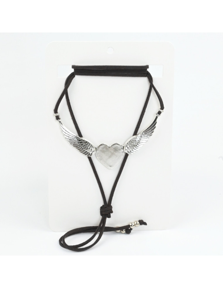 Collar de gamuza de múltiples vueltas, con dije exclusivo de fundición con forma de corazón con alas y terminales en punteras.