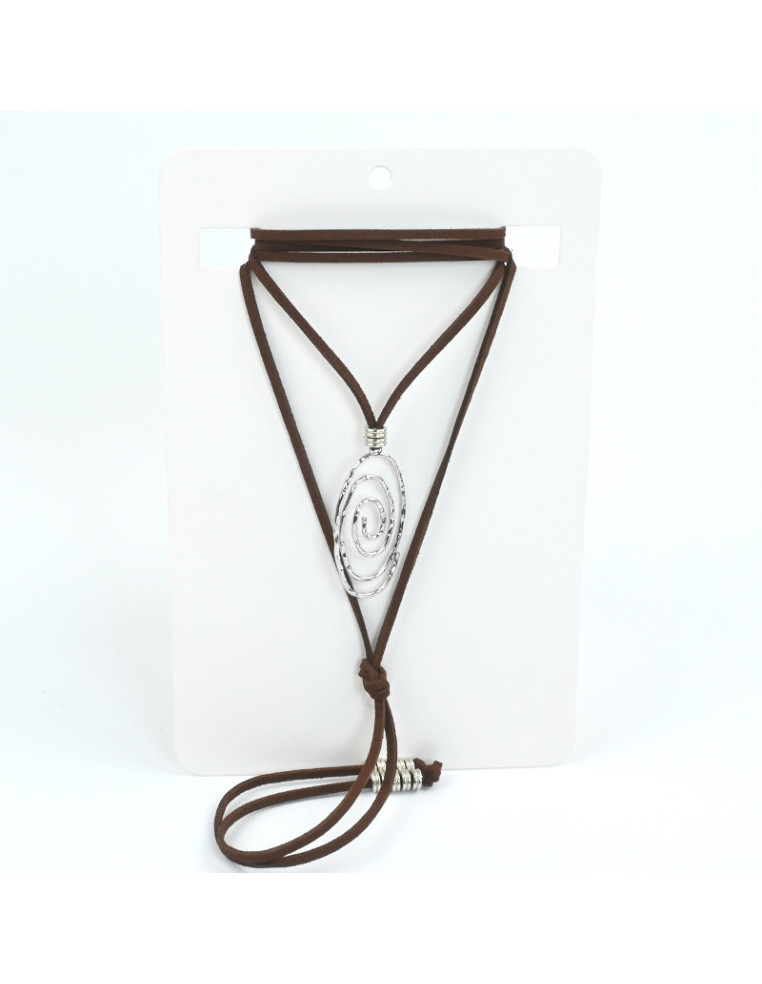 Collar de gamuza de múltiples vueltas, con dije exclusivo de fundición spiral y terminales en punteras.
