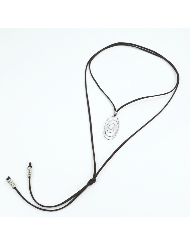 Collar de gamuza de múltiples vueltas, con dije exclusivo de fundición spiral y terminales en punteras.