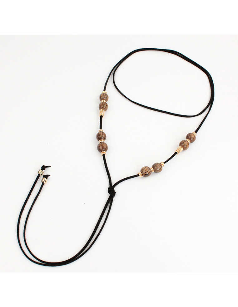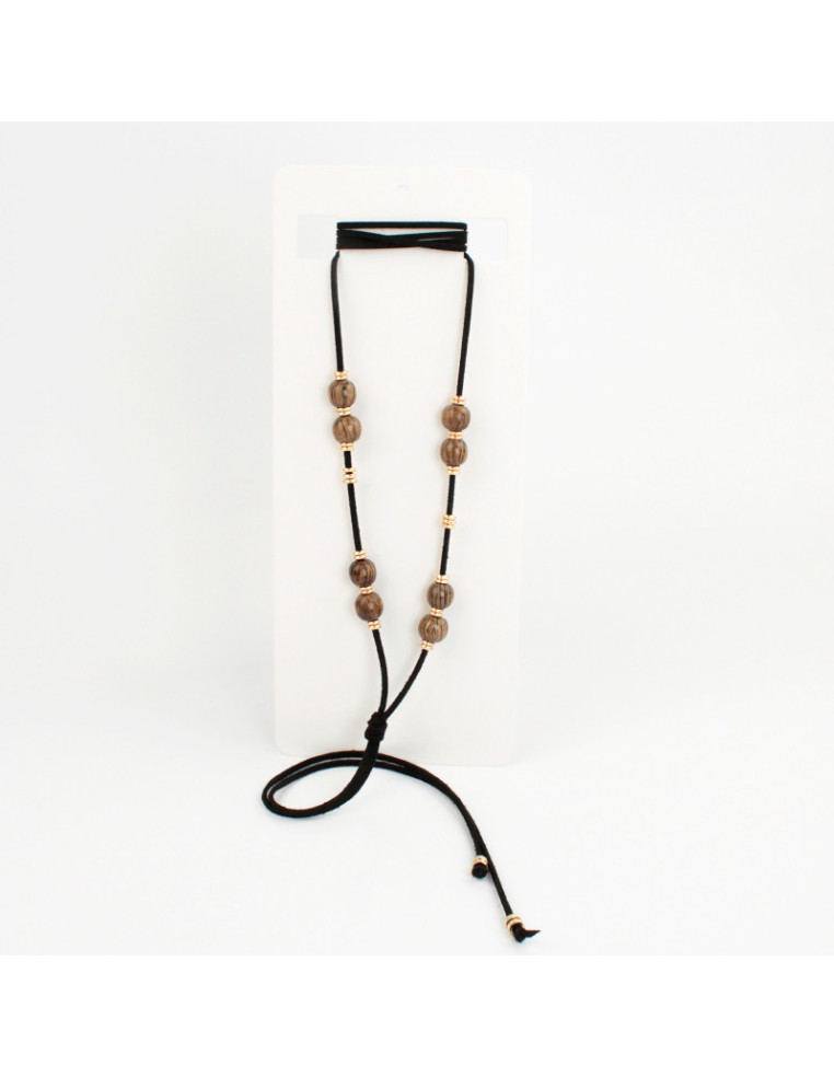 Collar de gamuza de múltiples vueltas, con piezas exclusivas de madera y terminales en punteras.