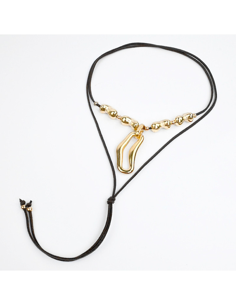 Collar de gamuza de múltiples vueltas, con dije exclusivo y piezas de CCB orgánicas,con terminales en punteras.