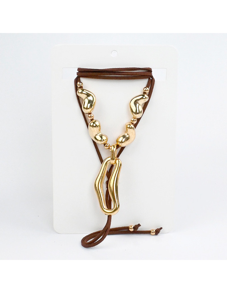 Collar de gamuza de múltiples vueltas, con dije exclusivo y piezas de CCB orgánicas,con terminales en punteras.