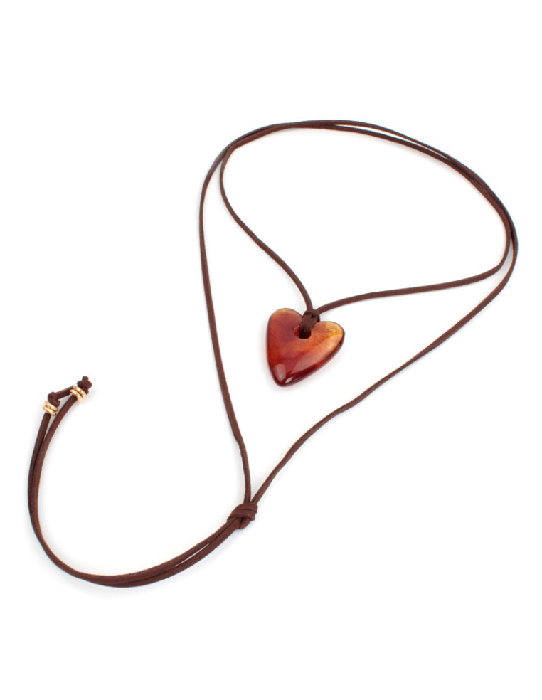 Collar de gamuza de múltiples vueltas, con dije exclusivo de acrílico con forma de corazón y terminales en punteras.