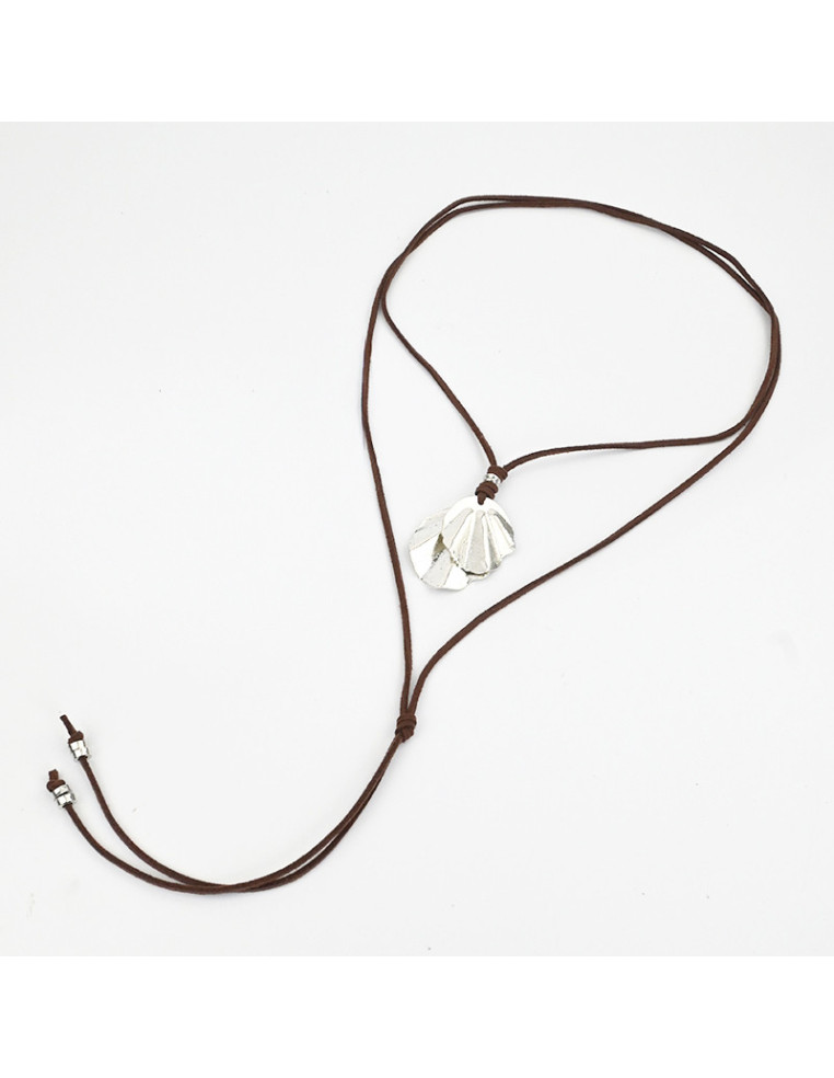 Collar de gamuza de múltiples vueltas, con doble dije exclusivo de fundición y terminales en punteras.