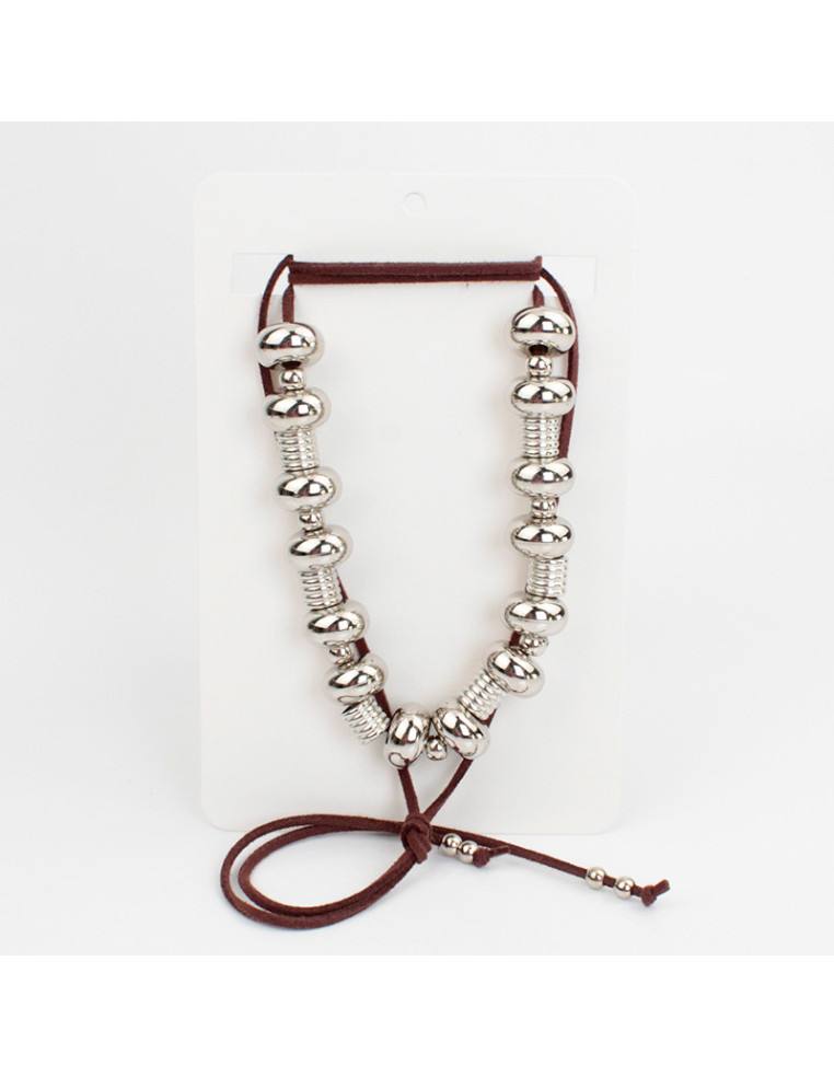 Collar de gamuza de múltiples vueltas, enhebrada con piezas exclusivas de CCB y terminales en punteras.