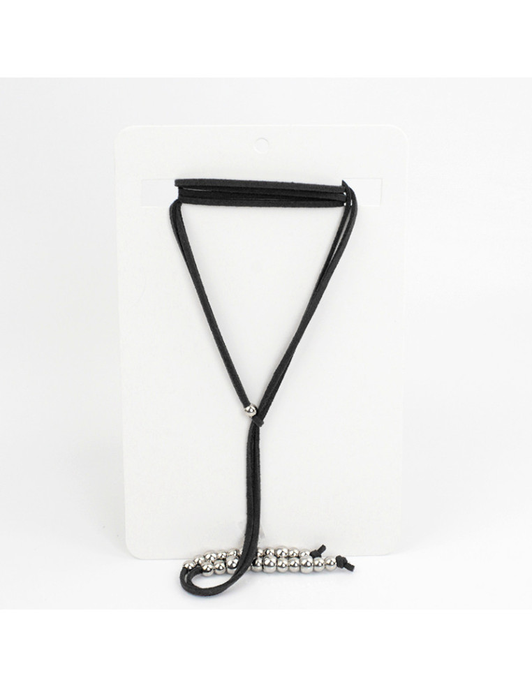 Collar corbatero de gamuza de múltiples vueltas regulable, con dije exclusivo de fundición y terminales en punteras.