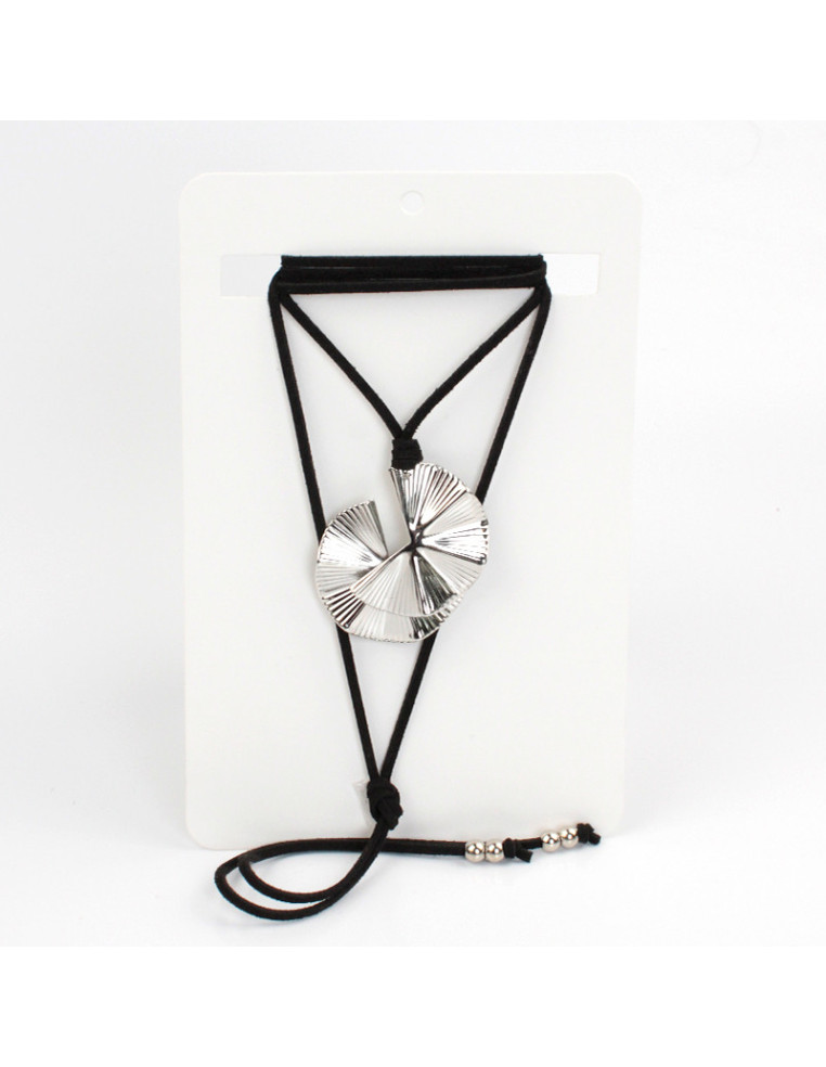 Collar de gamuza de múltiples vueltas, con dije exclusivo de metal de forma orgánica y terminales en punteras.