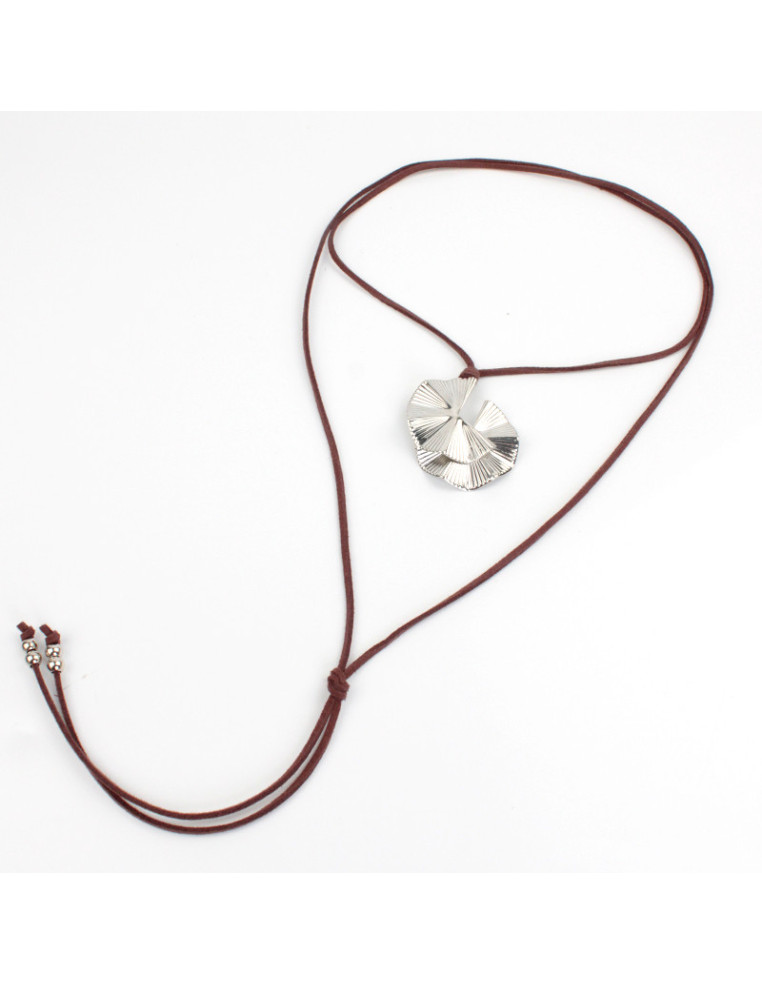 Collar de gamuza de múltiples vueltas, con dije exclusivo de metal de forma orgánica y terminales en punteras.