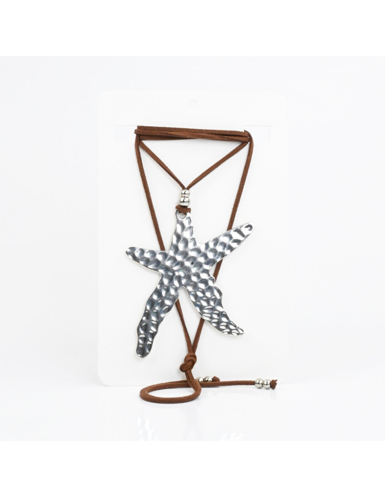 Collar de gamuza de múltiples vueltas, con dije exclusivo con forma de sol y terminales en punteras. Medida: 140cm de largo.