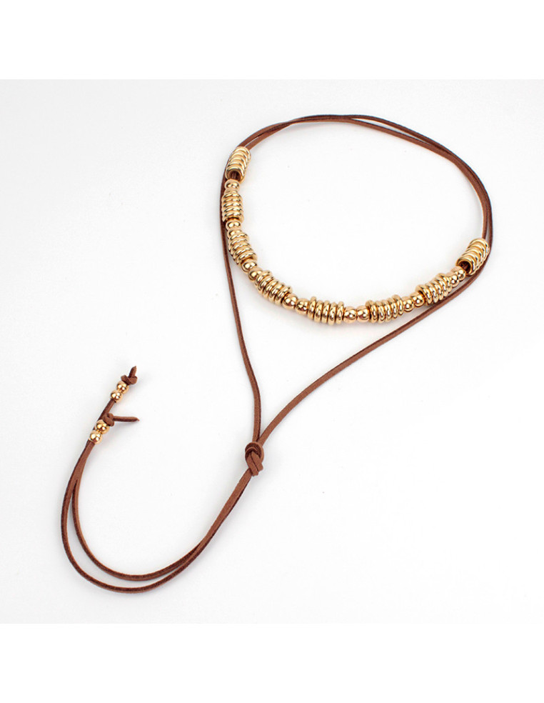 Collar de gamuza de múltiples vueltas, enhebrada con piezas exclusivas de CCB y terminales en punteras. .