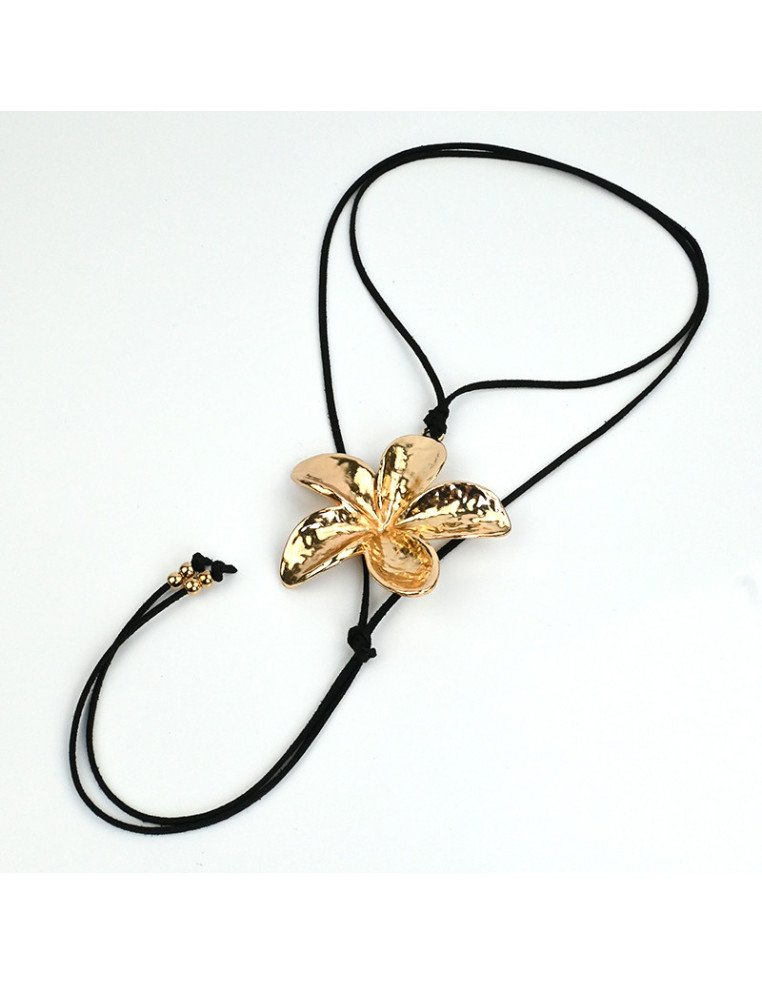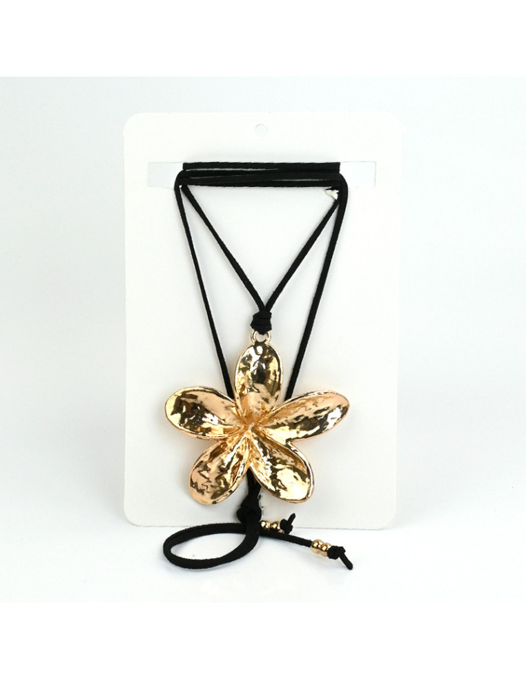 Collar de gamuza de múltiples vueltas, con dije exclusivo de fundición con forma de flor y terminales en punteras.