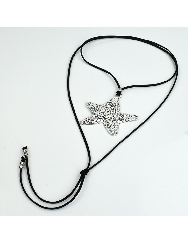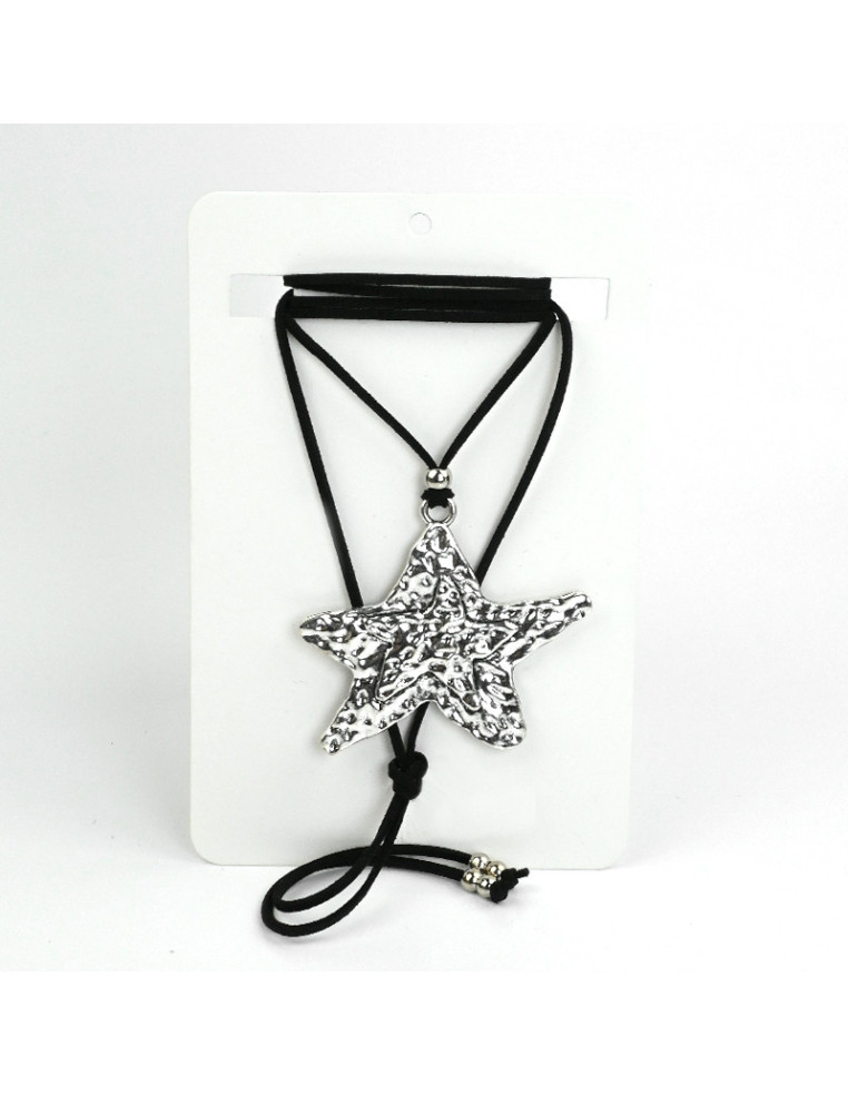 Collar de gamuza de múltiples vueltas, con dije exclusivo de fundición con forma de estrella texturizada y terminales en punteras.