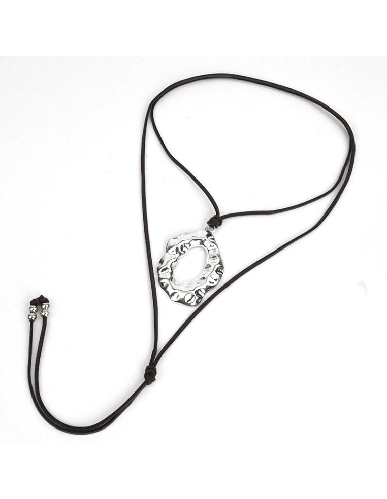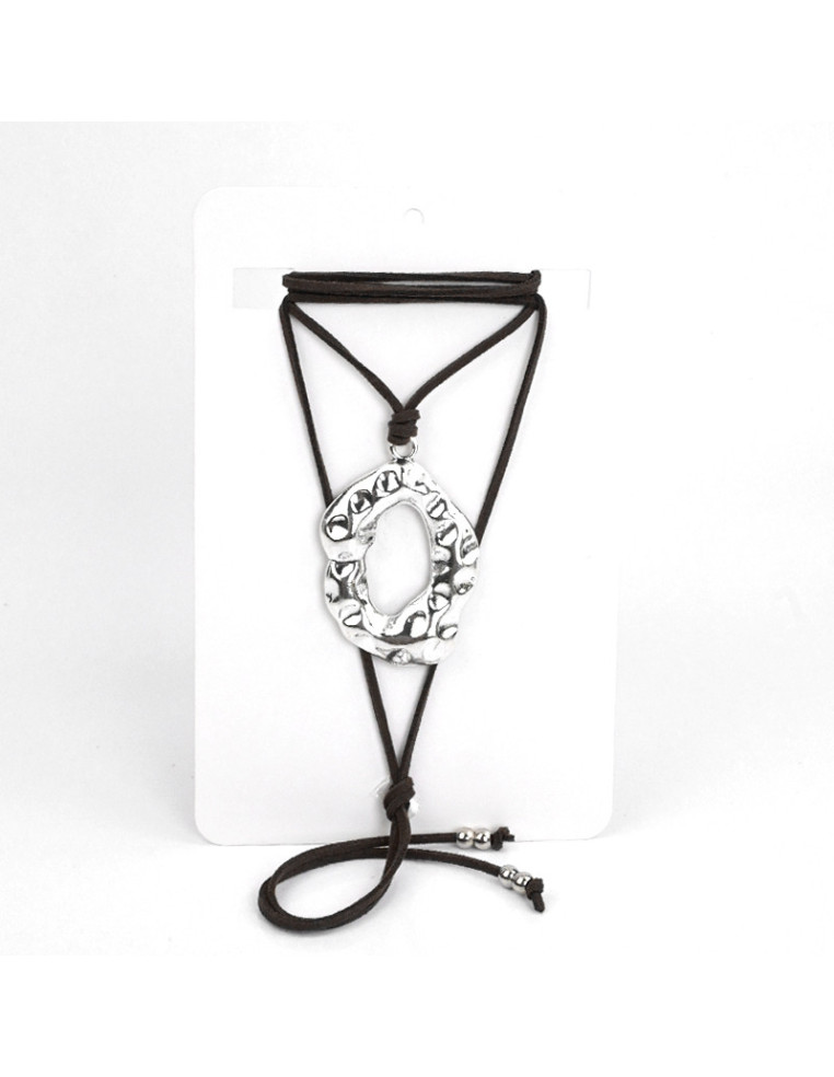 Collar de gamuza de múltiples vueltas, con dije exclusivo de fundición de forma orgánica y terminales en punteras.