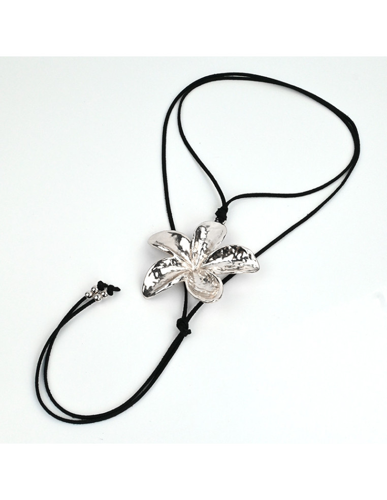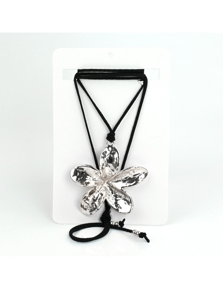 Collar de gamuza de múltiples vueltas, con dije exclusivo de fundición con forma de flor y terminales en punteras.